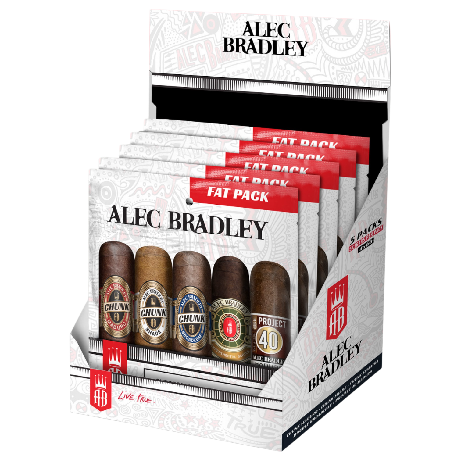 (1) Chunk Maduro (1) Chunk Shade (1) Chunk Sumatra (pre-release) (1) Double Broadleaf Chunk (1) Project 40 Maduro (pack exclusive)