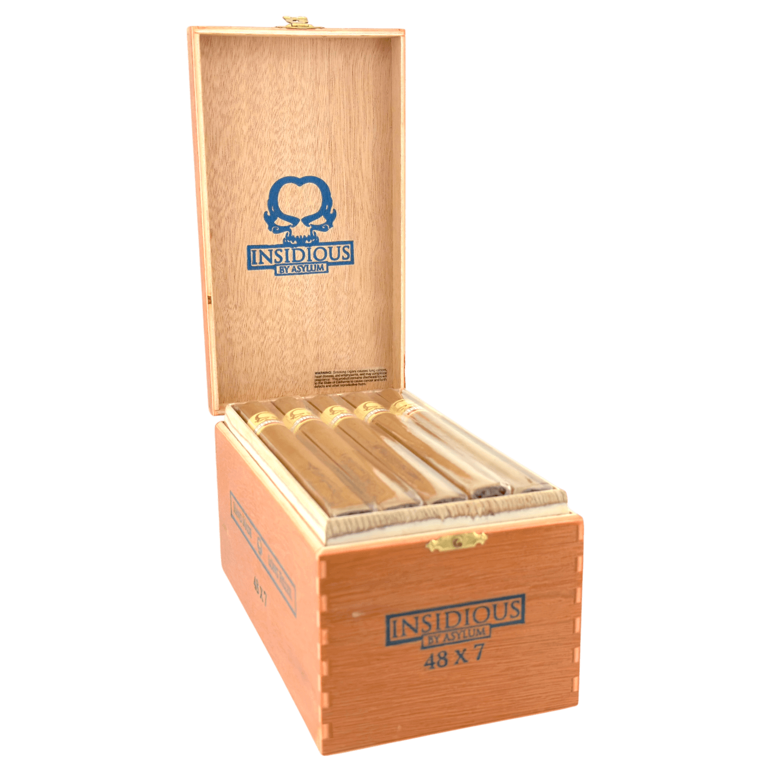 Insidious utilizes the first Ecuadorian Connecticut wrapper leaf of any Asylum release. Smooth and creamy, this wrapper conceals Honduran long-fillers and a Honduran binder, all combined to produce a relaxing, mellow experience. Each of the vitolas in the line boasts a price point less than five buckaroos, making this sweet snack both easy on the palate and easy on the wallet.