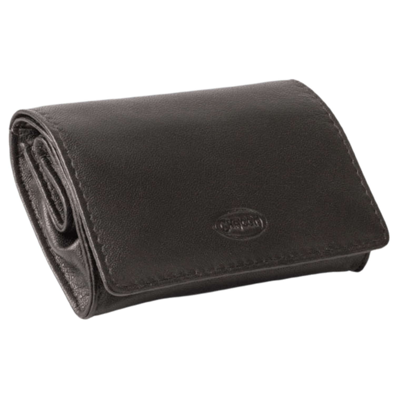 CHACOM Black leather tobacco pouch: compact and practical, with a rubber lining (“English sheet”) to preserve the humidity of the tobacco, and a secure magnetic snap closure.