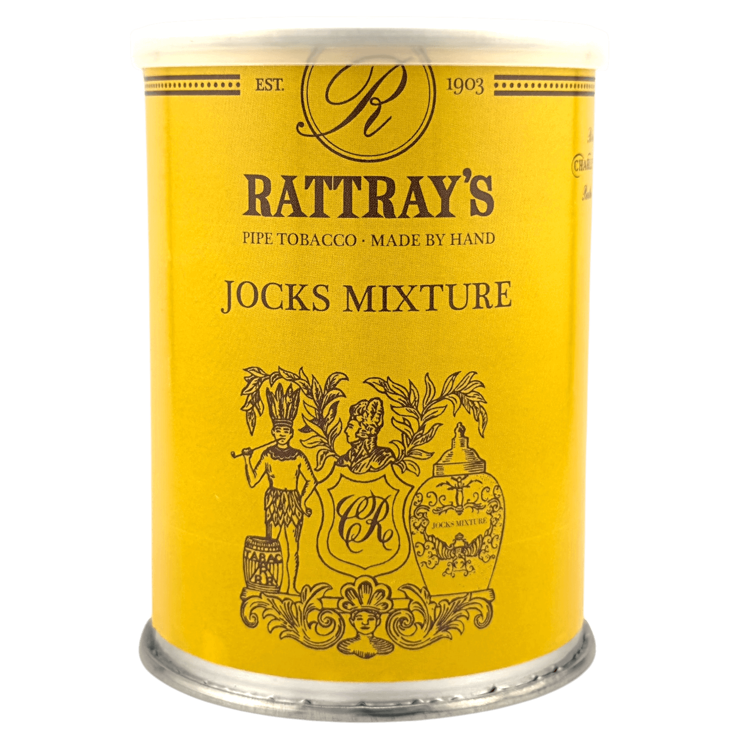 A combination of different Virginia tobaccos with Black Cavendish and some Latakia.